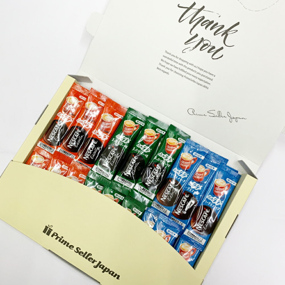 ネスカフェの手軽に飲めるスティックタイプのラテセットはいかがでしょうか?なめらかな口当たりで美味しいです。3種類のフレーバーがあり、選ぶ楽しみがあります。かわいいギフトボックス入りですので差し入れに向いています。