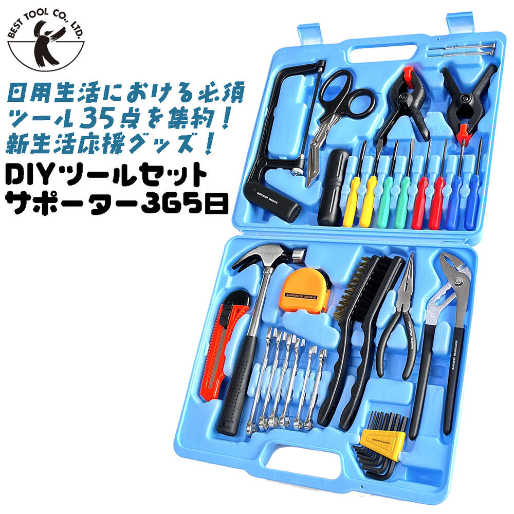 ホームメンテンナンスに必要な工具をセットにした商品です。物を切る為の工具、穴をあける為の工具、接合する為、締め付ける工具、さび落としができる工具、計る為の工具、汚れ落としの工具など、ホームメンテナンスに必要なものが一通りセットになっています。ケース入りで、コンパクトに収納できるので、置き場所にも困らないと思いますよ。