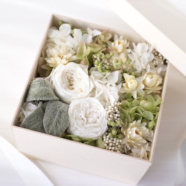 白の色合いが可愛らしいインテリア映えするブリザードフラワーで豪華な印象でおススメです。