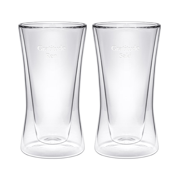 シンプルな佇まいでありながらも置いてあるだけで上品で高級感があり存在感を放つ「ダブルウォールハイボール」はいかがでしょうか?2重耐熱ガラス製なので軽くて持ちやすいフォルムで結露しないので実用的です!各グラスの側面と底面にメッセージを入れることができ特別感があり、ペアなので結婚祝いには喜ばれるのではないでしょうか?御2人の名前も入れることが出来ますしオススメ商品です!