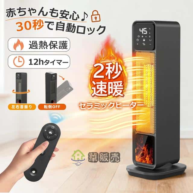 こちらはスイッチを入れて2秒で暖かくなる速暖性があります。首振りなどの機能で効率よく温められ実用的です