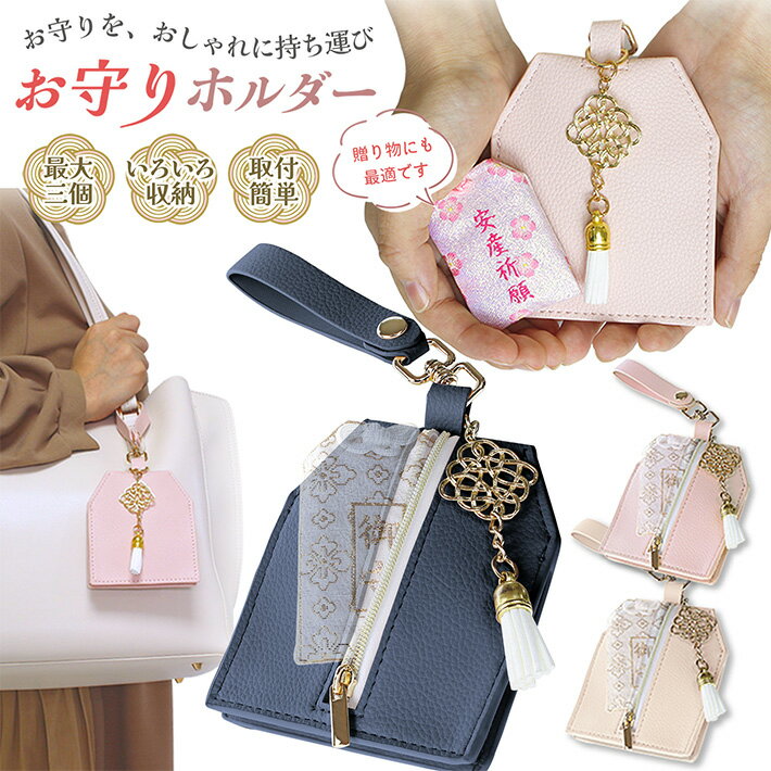 こちらのお守りホルダーは、お守りを入れて持ち運ぶのにぴったりのアイテムです。お守りが3つほど入る大きさなので、お守りの他におみくじを入れたりすることも出来ます。ベージュ、ピンク、ブルーの3色から選べます。