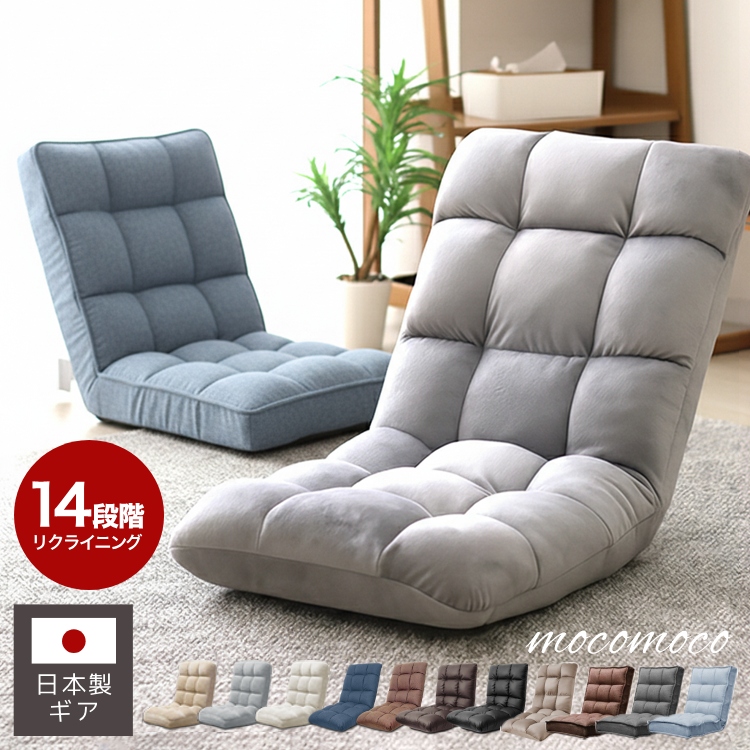 日本製の座椅子です。日本人に合った造りです。リクライニングも14段階あり、好みの角度に調節可能。オススメです。
