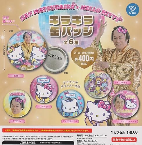 プレゼント利用に気軽に贈れるマツケンサンバの缶バッジがおすすめ。キティちゃんとのコラボ商品なので、マツケンとキティがマッチする奇跡のデザインをパチッとバッグなどに取り付けてファッショナブルなアピールが行えますよ。
