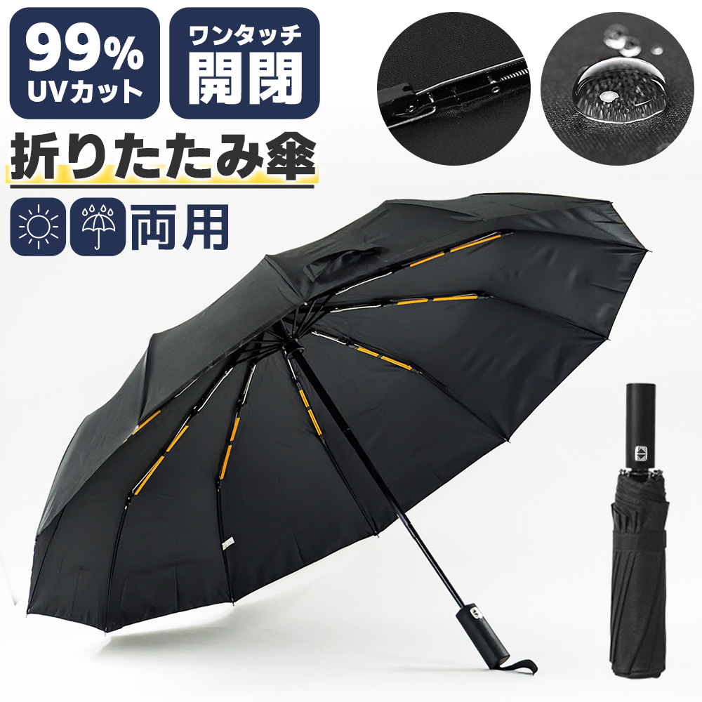 自動開閉タイプの折りたたみ傘は、12本骨の高強度グラスファイバーで風に強く、大きめサイズでもしっかり軽快に使えるのが魅力。UVカット仕様で日傘としても活躍し、突然の雨にも安心の撥水加工付き。コンパクトに持ち運べるので通勤・通学にもぴったりです。晴雨兼用で一年中頼れる万能傘です。