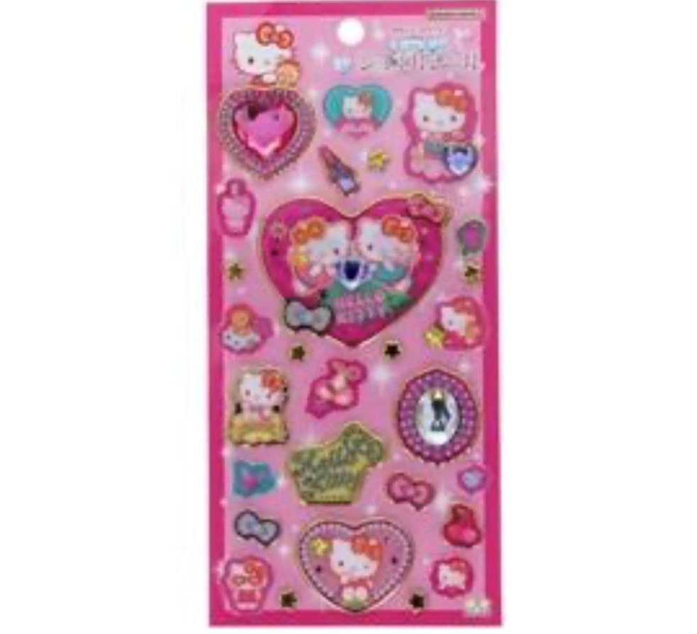 こちらの、ハローキティちゃんのぷくぷくジェエルシールは如何でしょうか?触り心地が良くてキラキラでとてもカワイイです。サンリオキャラクターは特に人気ですね。