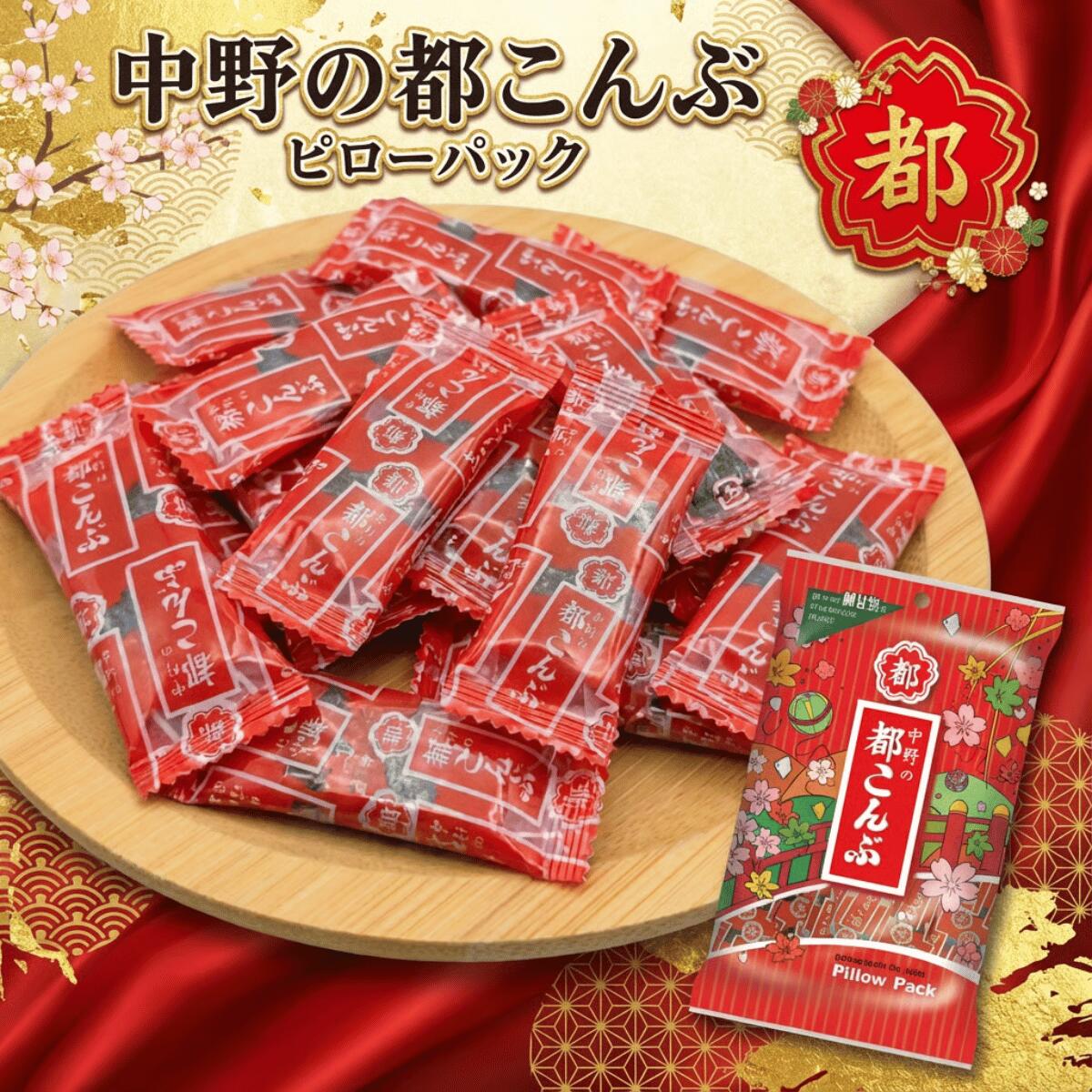 定番おやつの都こんぶがいただきやすいピローパックになりました。シコシコと噛めば自然の旨みが滲み出る素朴な美味しさ50gたっぷり楽しめます。お腹で昆布が膨らんで腹持ち良くヘルシーにいただけるのも嬉しい。