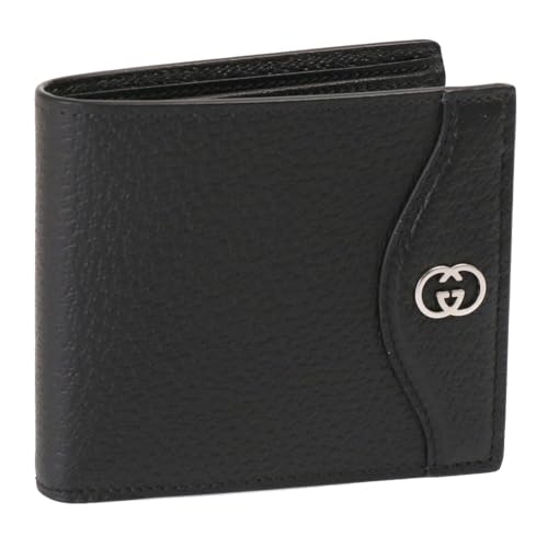 グッチの二つ折り財布でブラックのレザー製でできたインターロッキングGモデルはいかがでしょうか?すっきりとしたスタイリッシュで上品!ビジネスシーンからオフの日やフォーマるシーンまで幅広く使える飽きのこないデザインで長く使えそう!二つ折りを開くと片側にスナップ付きの小銭入れがあり、片側にはカードさしやオープンポケットがあり、奥には仕切りで2つの紺パート緬んとになったお札入れがあり使い勝手抜群です!