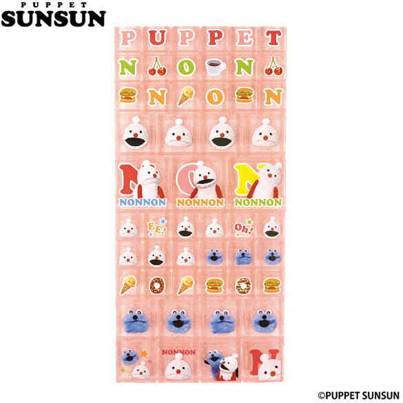 パペットスンスンの タイルシールです。クリアな素材感がキレイで大人にもおすすめ!キラキラ輝くラメ入りなのもデコなどシール帳にも映えますね。