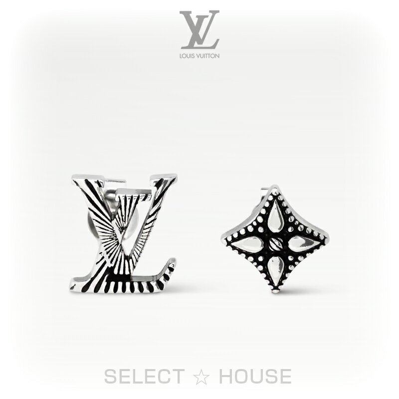 モノグラム・フラワーとLVロゴの組み合わせが、ヴィトンと分かりながらも、くどさを感じない上品なアシンメトリーピアスです。万能素材のスターリングシルバーを使用したおすすめの商品です。
