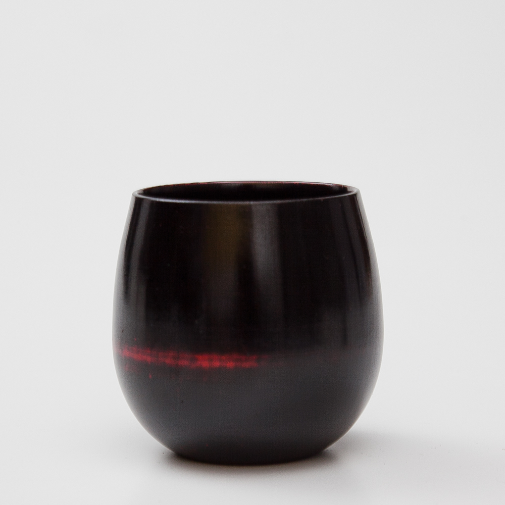 木製の器に漆塗りの軽くて割れない湯飲みはいかがでしょうか。黒地に赤の差し色が和モダンでお洒落だと思うのでおすすめします。