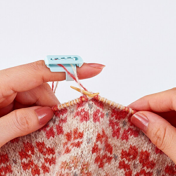 毛糸を編んでいくときに指にガイドが付けてあると糸がごちゃごちゃせず、ストレスなく編むことができますよ。小ぶりなので邪魔になりにくく、使いやすいと思います。