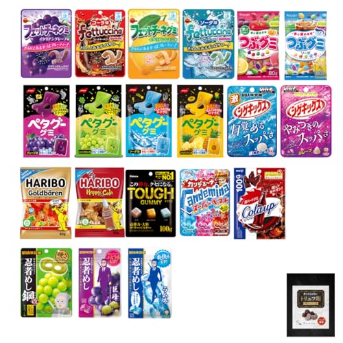 ハードグミとして、こちらのものはいかがでしょうか? ハリボー、忍者めし、シゲキックス、コーラアップ、ペタグー、タフグミ、フェットチーネグミなど20種類のハード系グミの食べ比べができて楽しいですね。