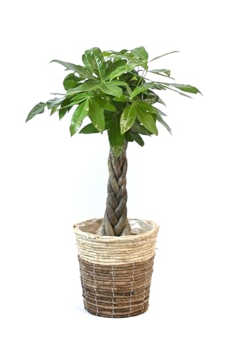 観葉植物のパキラです。おしゃれなフォルムですし、目に優しいグリーン。見ばえがよく、すてきなインテリアになると思います。贈り物にぴったりですよ。