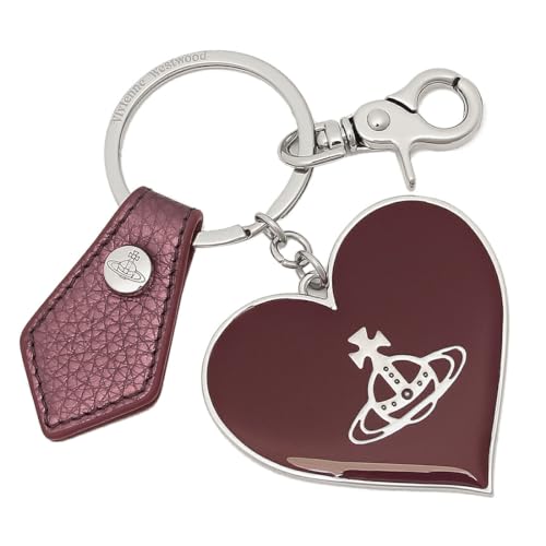 ヴィヴィアンウエストウッドのキーリングでパープル系のハートのチャーム付きはいかがでしょうか?キーリングからはフックもついておりつるすこともできます。ハートの中にはブランドロゴであるオーブモチーフがメタルカラーで入っています。もう一つ天然皮革製のモチーフもついていてお洒落ですよ。女性へのプレゼントに喜ばれると思います。ハートのチャームサイズは横6.8×縦6.3cm、もう一つは横3.2×縦5.5cm。
