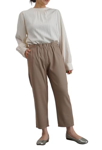 ベージュのデザインでおしゃれです 伸びがいい生地のパンツで動きやすいです 毛皮になりにくい生地で丈夫です ゴムの入れ替えをすることができる ズボンで便利です
