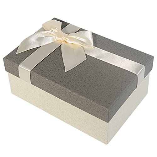 リボン付きのシックなバイカラ―のギフトボックスです。中サイズなのでやや大きめのプレゼントも入れるだけで素敵な贈り物ができます。