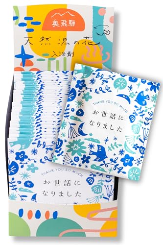 入浴剤の「天然湯の花」です。個包装の30個セット。「お世話になりました」のメッセージ付きなので、退職時のプチギフトにふさわしいですよ。