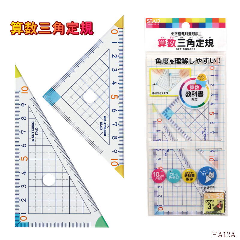 算数の授業をスムーズに進めるために開発された、小学生の使いやすさを追求した三角定規セットです。短い線を引く際の「ズレ」や「書きにくさ」を解消する工夫が凝らされており、図形の学習が始まる低学年のお子様にぴったりの学習道具です。