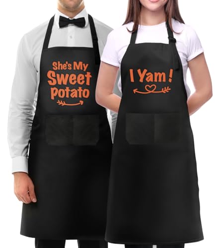 おもしろカップルのエプロンセットです。かわいいデザインのペアセットなので、使い心地がいいと思います。コスパが高く、写真映えもしますよ。