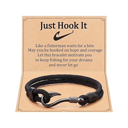 釣り針をモチーフにした遊び心のあるフックとシンプルでタフな編み込み紐を組み合わせた男前なデザインが特徴で、軽量かつ着脱が簡単なため日常使いしやすく、釣り好きの方への誕生日や記念日の面白いギフトとしても喜ばれる、個性的でスタイリッシュなファッションアイテムです。