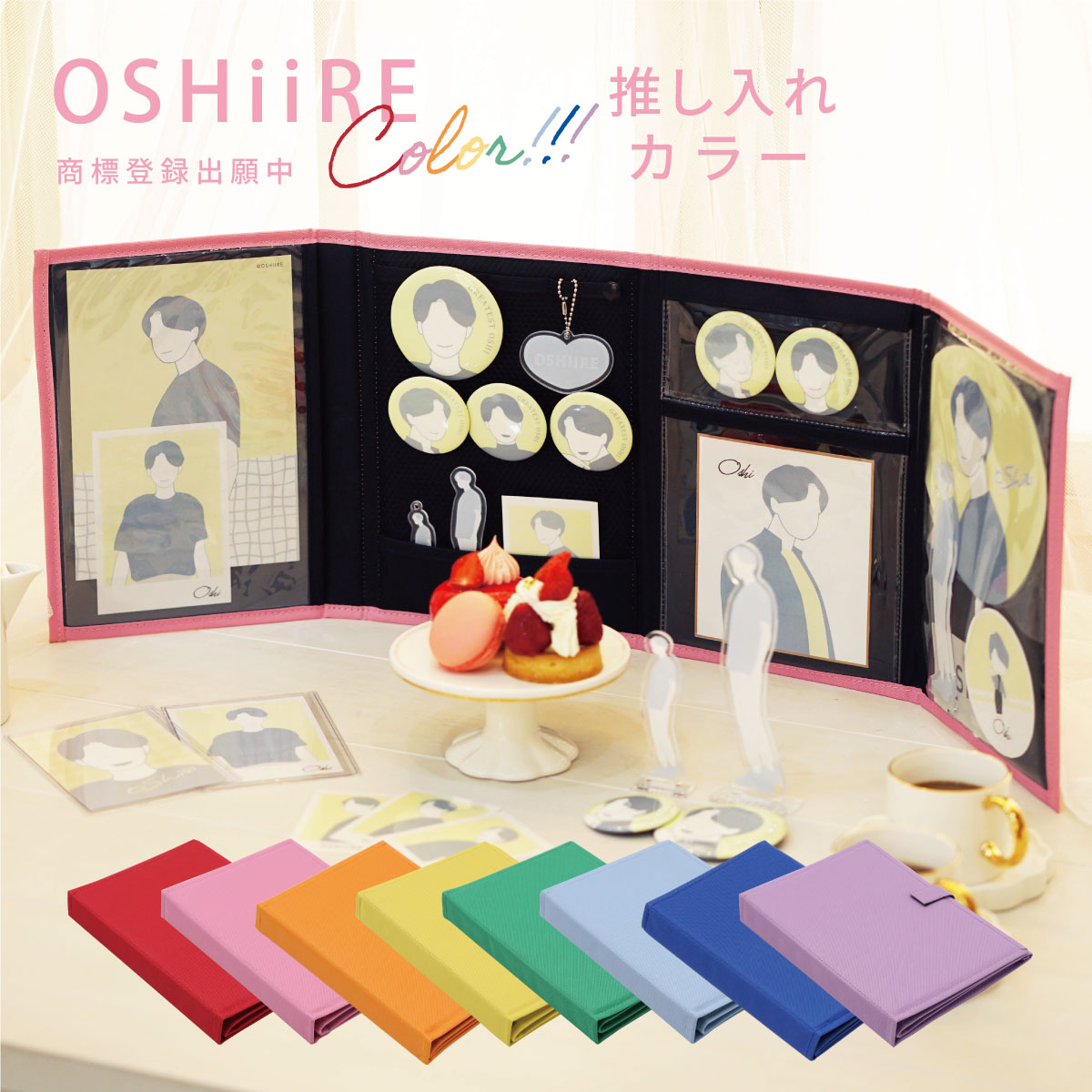 こちらの推しグッズ収納は自立するので立てることもでき、8色展開で推しカラーも選ぶことができます。ピンズも刺せるので缶バッジ収納など、マルチに使用できるのもいいですね。