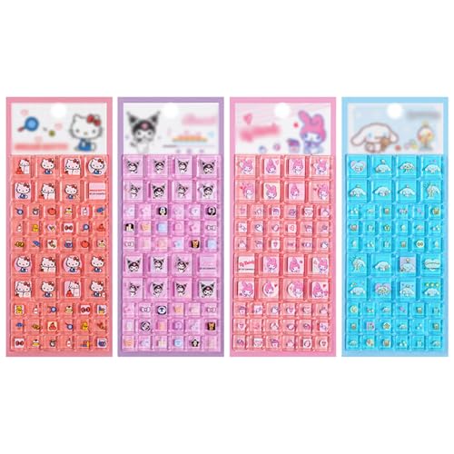 サンリオのタイルシールはいかがでしょうか。サンリオキャラの中でも特に人気が高いハローキティ、クロミ、マイメロディ、シナモロールの4タイプがあり、そのうちの2枚もしくは4枚すべてのセットで。1枚売りの場合は店側がランダムで絵柄を指定する仕組みのようです。ぷっくりシールでもあるので、シールシートを眺めていると電卓やPCのキーボードのようにも見えて可愛いですね。透明感があってきれいなシールです。